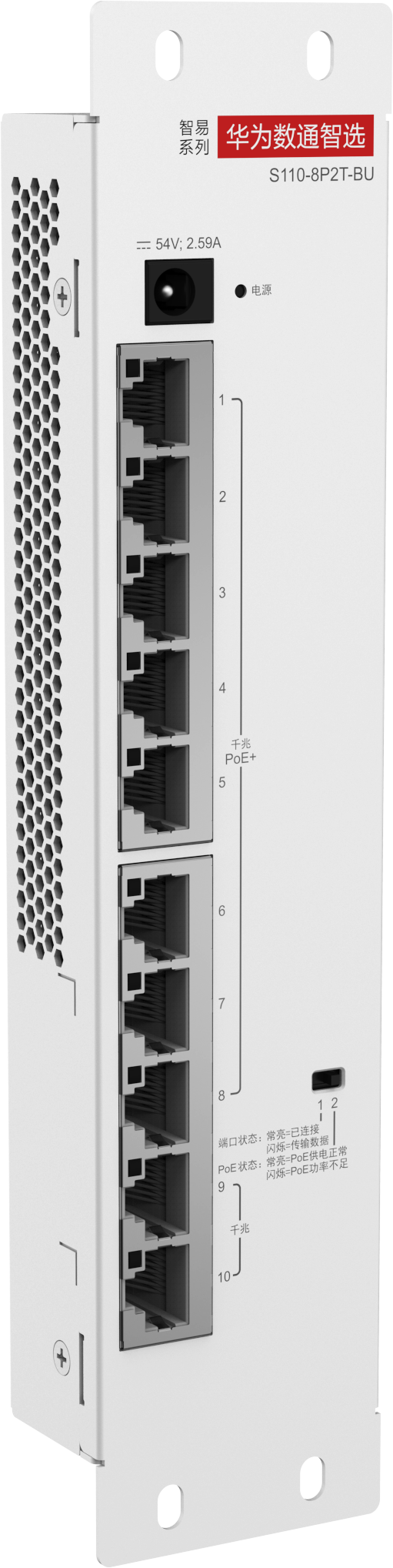S110-8P2T-BU(8个10/100/1000BASE-T以太网端口,PoE+,2个10/100/1000BASE-T以太网端口,国标交流适配器)