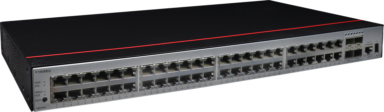 S200-48P4X(48个10/100/1000BASE-T以太网端口,4个万兆SFP+,PoE+,交流供电)