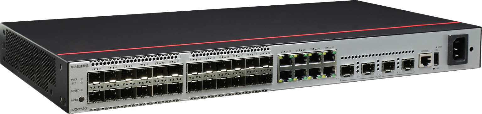 S200-32ST4X (24个千兆SFP,8个10/100/1000BASE-T以太网端口,4个万兆SFP+,交流供电,前维护)