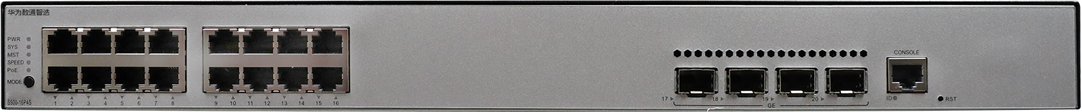 S500-16P4S(16个10/100/1000BASE-T以太网端口,4个千兆SFP,PoE+,交流供电)