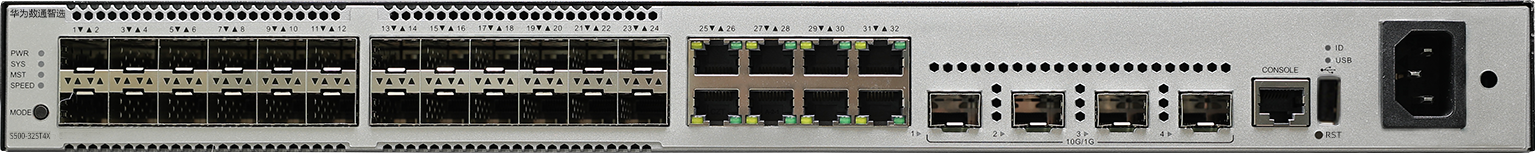S500-32ST4X(24个千兆SFP,8个10/100/1000BASE-T以太网端口,4个万兆SFP+,交流供电)